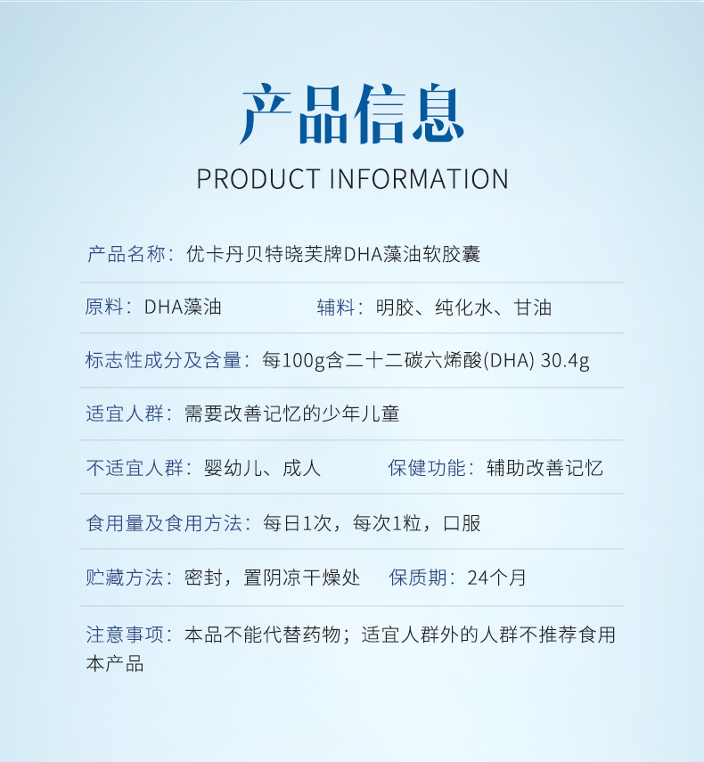 產(chǎn)品名稱:優(yōu)卡丹貝特曉芙牌DHA藻油軟膠囊