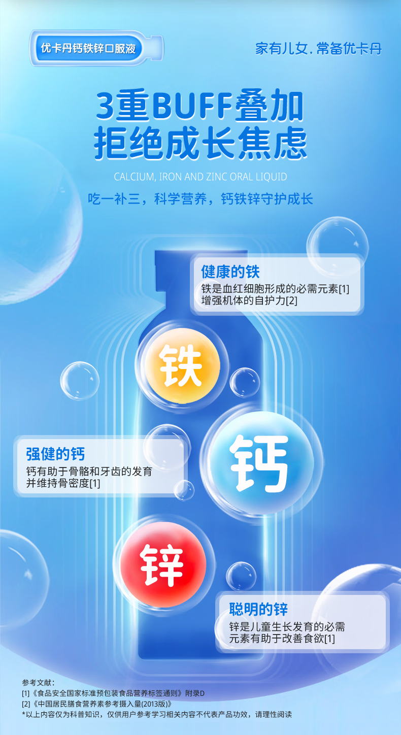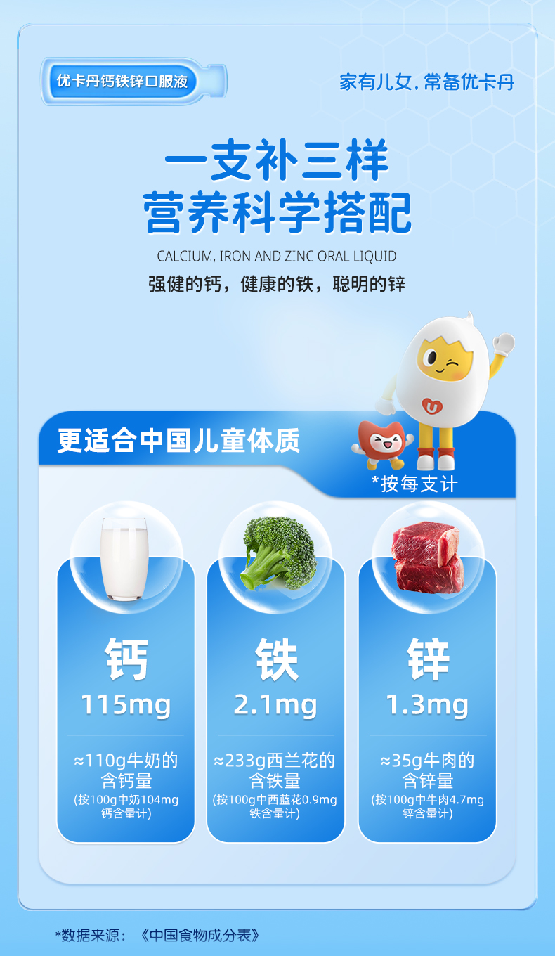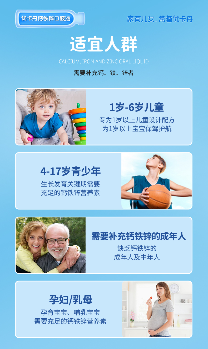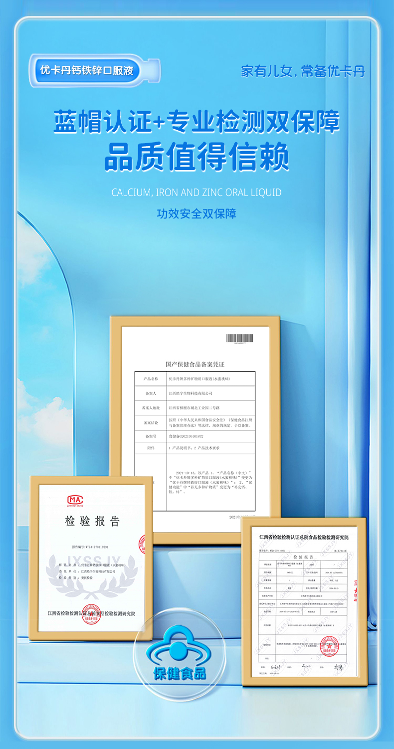 產(chǎn)品名稱:優(yōu)卡丹牌鈣鐵鋅口服液(水蜜桃味)