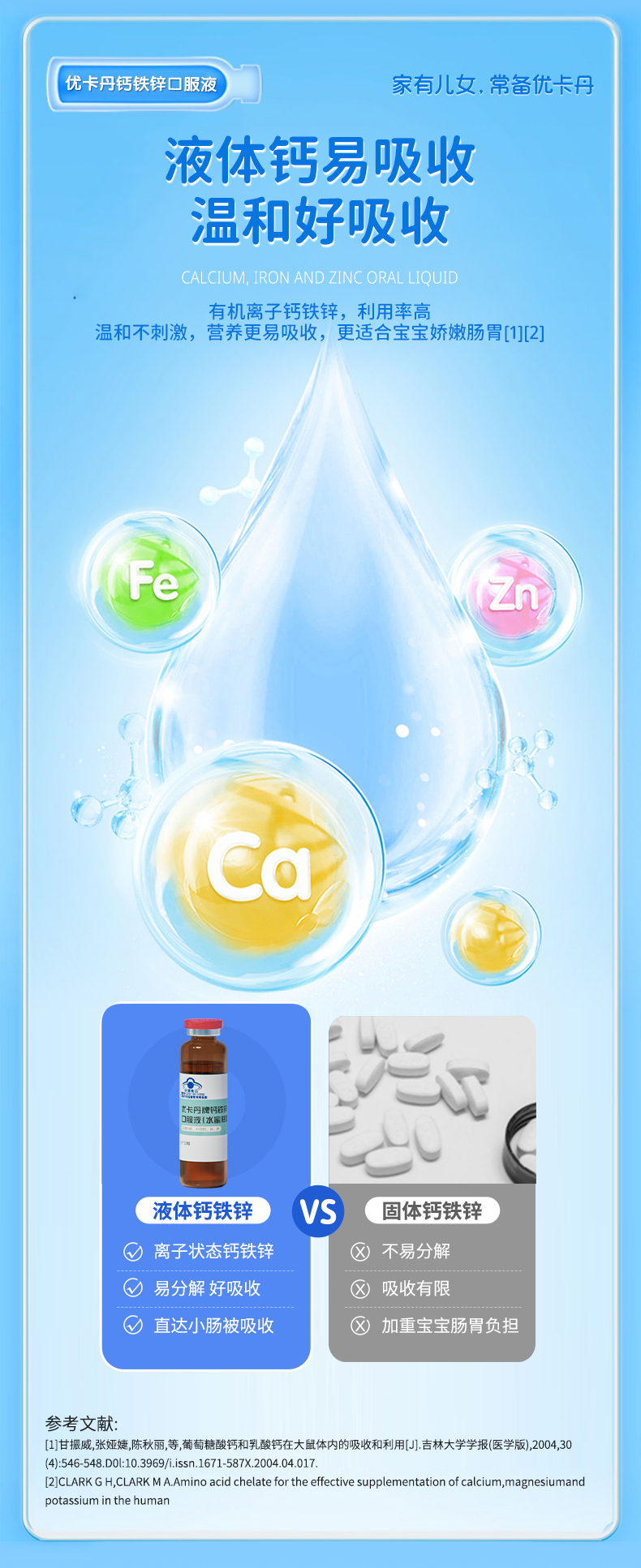 產品名稱:優卡丹牌鈣鐵鋅口服液(水蜜桃味)
