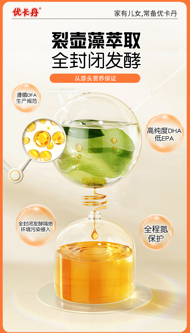 這款 DHA 藻油 + ARA 凝膠糖果,正是優卡丹結合孩子成長需求打造的優質產品,從原料到生產層層把關,給孩子滿滿的品質保障,甚至一度成為寶媽圈復購率超高的“爆品”,寶媽們買得放心,用得安心~